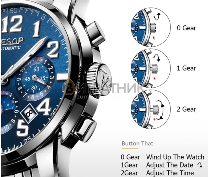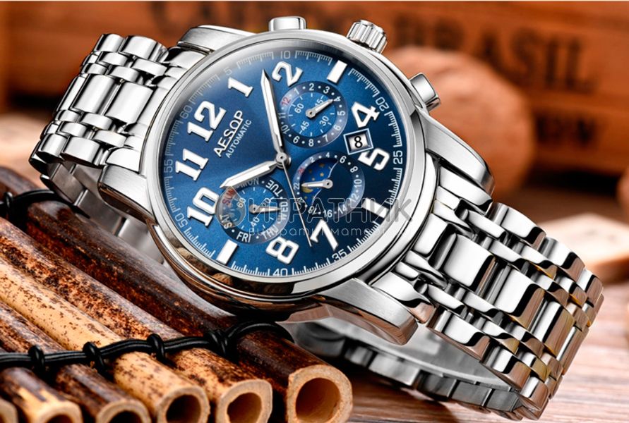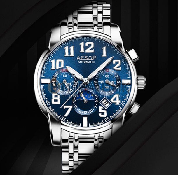 Стильний чоловічий годинник Aesop Original відзначається оригінальним дизайном. Прямі лінії, гострі краї та ексклюзивно зроблений корпус додають виробу розкішного вигляду. Завдяки такому аксесуарові ви матимете унікальну можливість правильно розставити акценти у створеному вами образі. До того ж вам достатньо лише підняти руку, аби щось показати, як очі всіх присутніх будуть прикуті до вашого елегантного годинника.