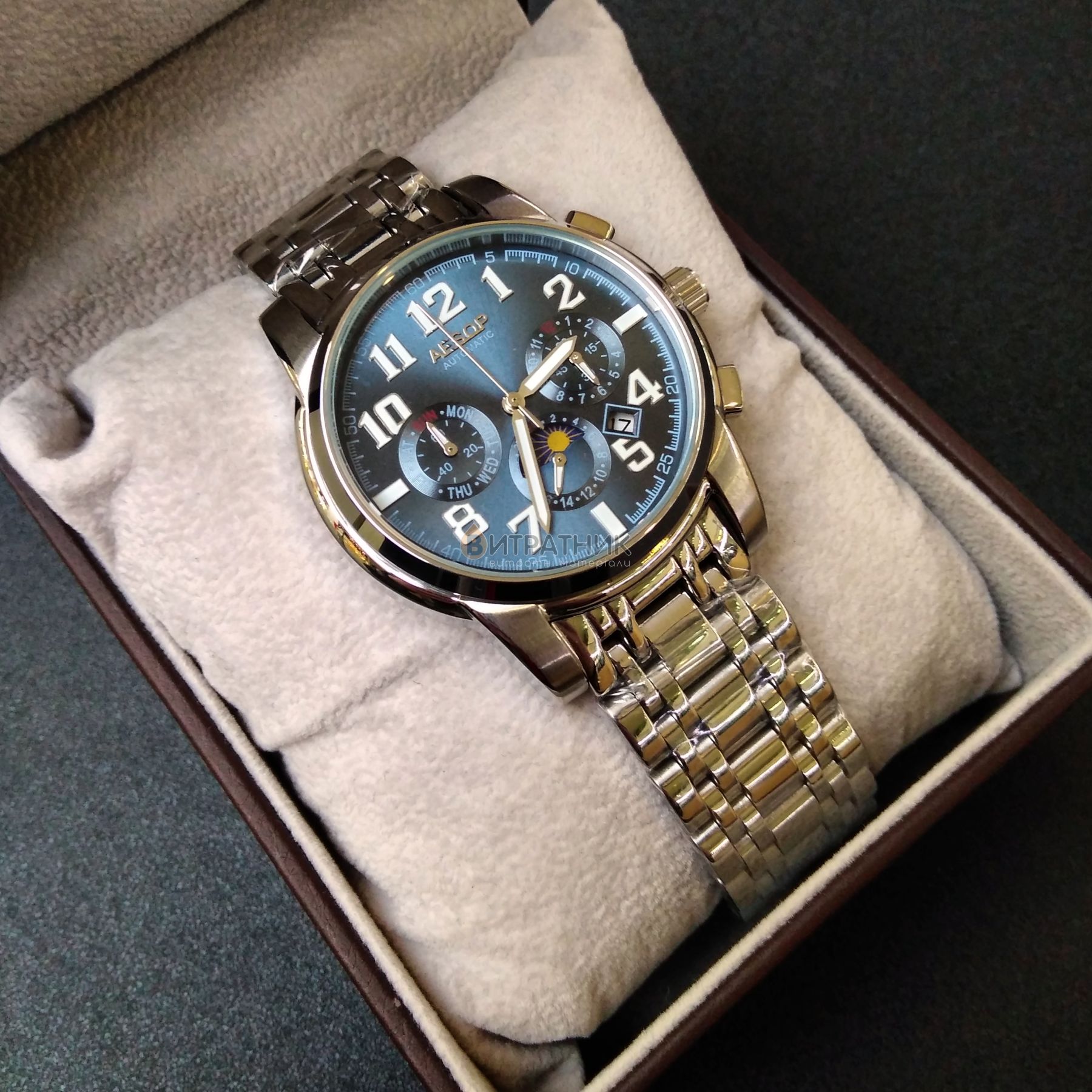 Дизайнери бренду Aesop приділили особливу увагу створенню циферблата. Колір моделі підібраний досить скрупульозно, щоб індекси / цифри відображалися на ньому максимально чітко та контрастно. Корпус виготовлений з міцного і зносостійкого матеріалу, який під впливом несприятливих факторів не втрачає своїх властивостей. Це означає, що ви зможете його носити стільки, скільки забажаєте. Аксесуар доповнений якісним ремінцем із класичною застібкою, яка регулюється. Він приємний на дотик, а при тривалому носінні не деформується й не псується. З огляду на такі характеристики вам просто необхідно купити чоловічий годинник Aesop Original, щоб залишатися у тренді, а головне, завжди підкреслювати авторитетність своєї персони у будь-якому суспільстві.