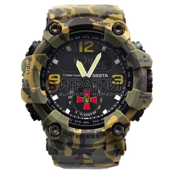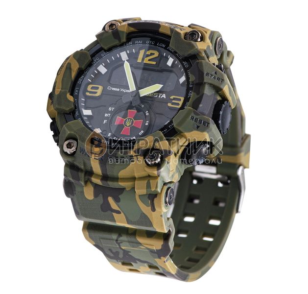 Функції:Герб ЗСУ, секундомір, будильник, підсвічування, дата, день тижня, місяць, другий час (Dual Time)