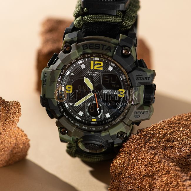 Стильний чоловічий годинник Besta Life Pro Khaki з компасом відзначається оригінальним дизайном. Прямі лінії, гострі краї та ексклюзивно зроблений корпус додають виробу розкішного вигляду. Завдяки такому аксесуарові ви матимете унікальну можливість правильно розставити акценти у створеному вами образі. До того ж вам достатньо лише підняти руку, аби щось показати, як очі всіх присутніх будуть прикуті до вашого елегантного годинника.