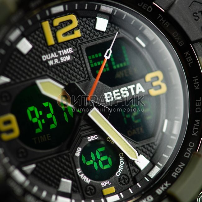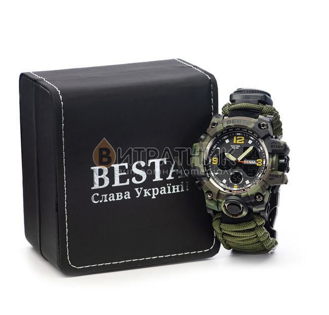 Дизайнери бренду Besta приділили особливу увагу створенню циферблата. Колір моделі підібраний досить скрупульозно, щоб індекси / цифри відображалися на ньому максимально чітко та контрастно. Корпус виготовлений з міцного і зносостійкого матеріалу, який під впливом несприятливих факторів не втрачає своїх властивостей. Це означає, що ви зможете його носити стільки, скільки забажаєте. Аксесуар доповнений якісним ремінцем із класичною застібкою, яка регулюється. Він приємний на дотик, а при тривалому носінні не деформується й не псується. З огляду на такі характеристики вам просто необхідно купити чоловічий годинник Besta Life Pro Khaki з компасом, щоб залишатися у тренді, а головне, завжди підкреслювати авторитетність своєї персони у будь-якому суспільстві.