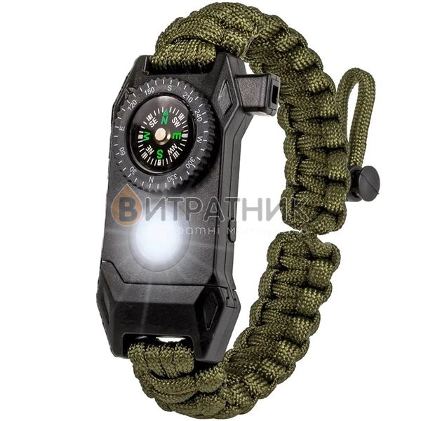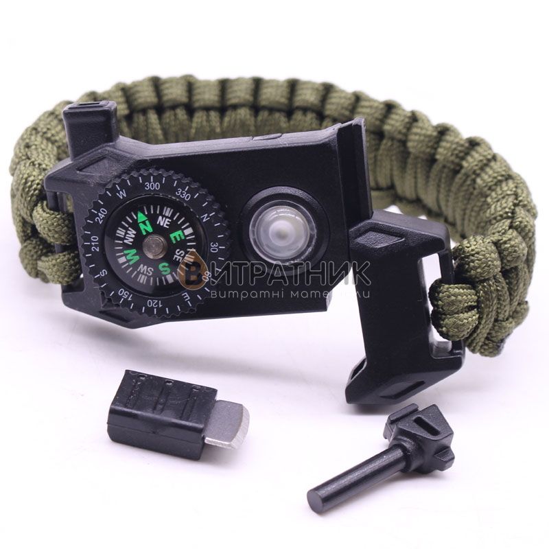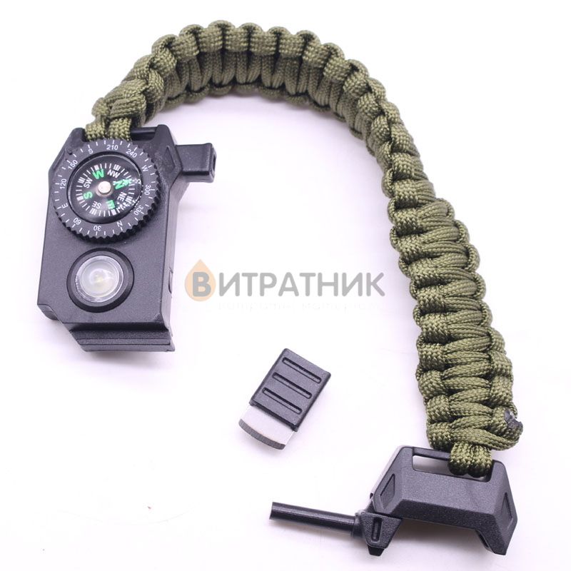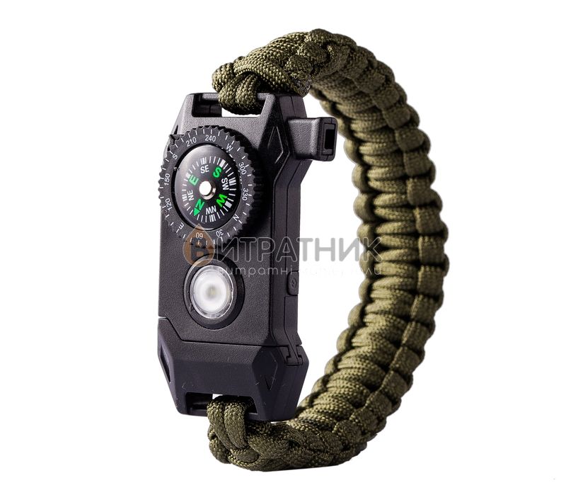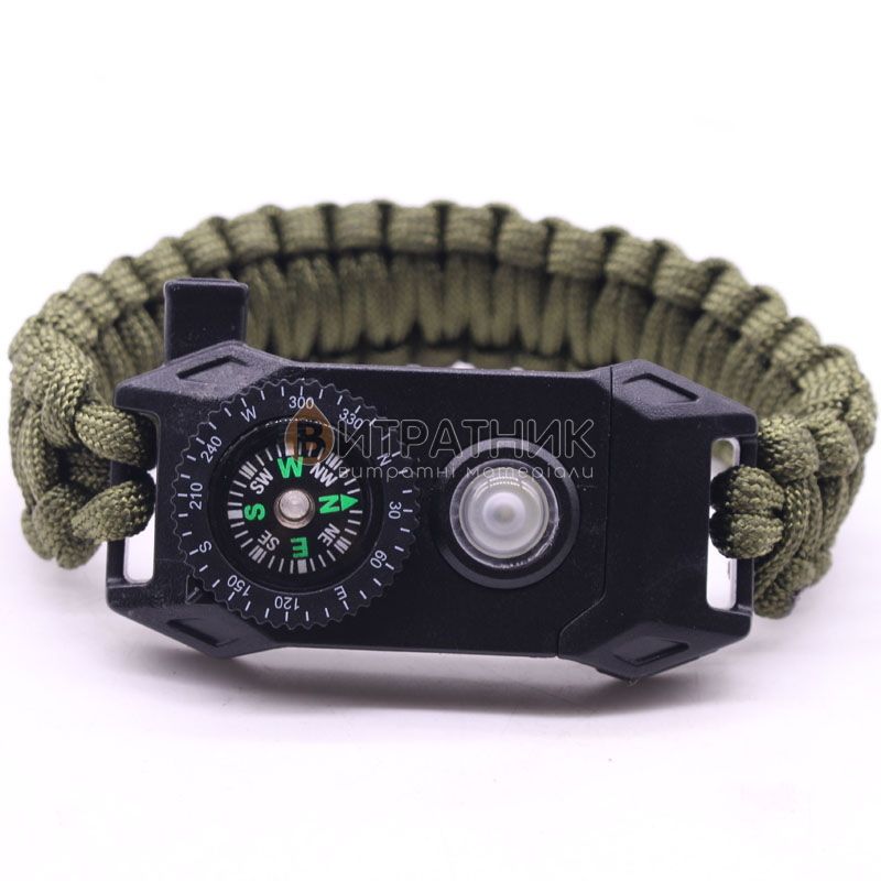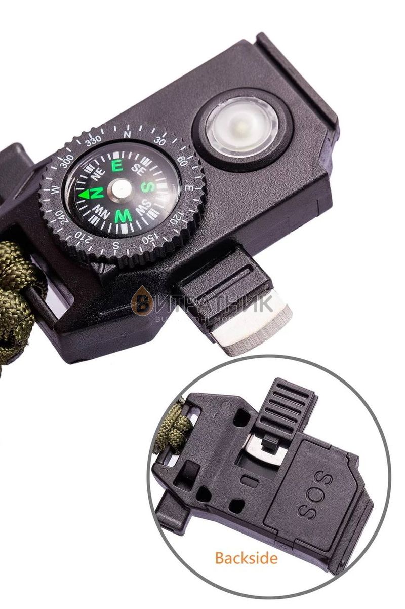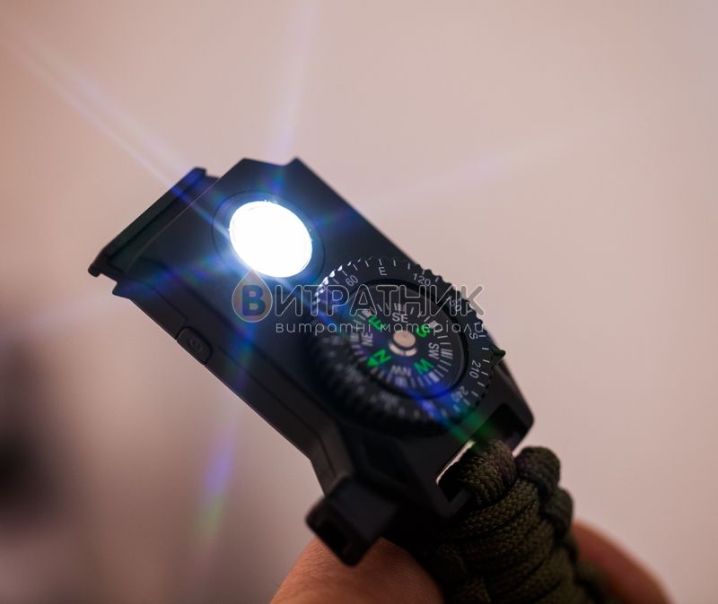Функції:Компасс. фонарик. острая застежка. кремень для огня. свисток