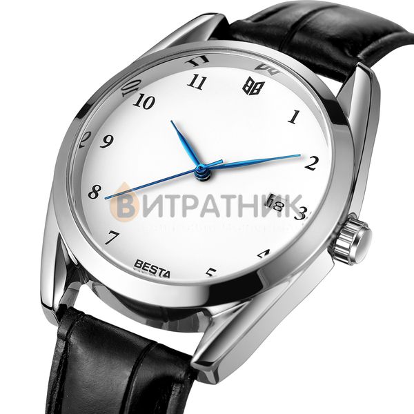 Стильний чоловічий годинник Besta Platinum відзначається оригінальним дизайном. Прямі лінії, гострі краї та ексклюзивно зроблений корпус додають виробу розкішного вигляду. Завдяки такому аксесуарові ви матимете унікальну можливість правильно розставити акценти у створеному вами образі. До того ж вам достатньо лише підняти руку, аби щось показати, як очі всіх присутніх будуть прикуті до вашого елегантного годинника.