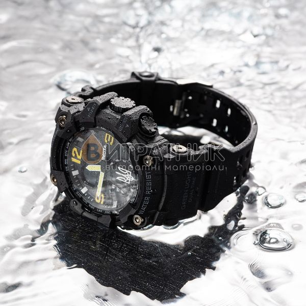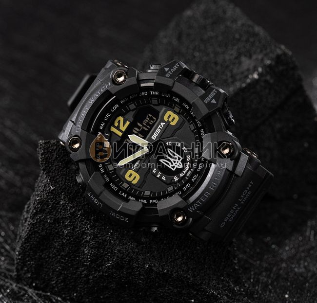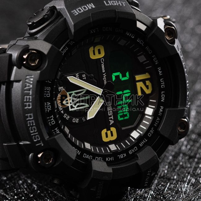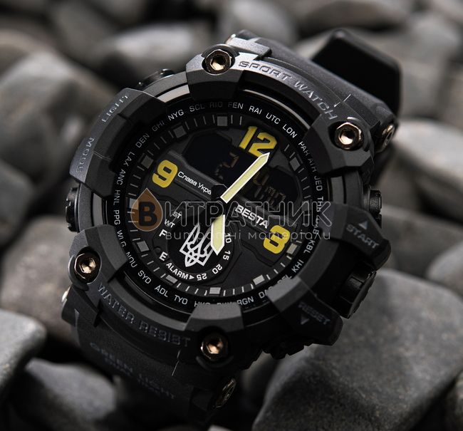 Функції:Трезубец. секундомер. будильник. подсветка. дата. день недели. месяц. второе время (Dual Time)