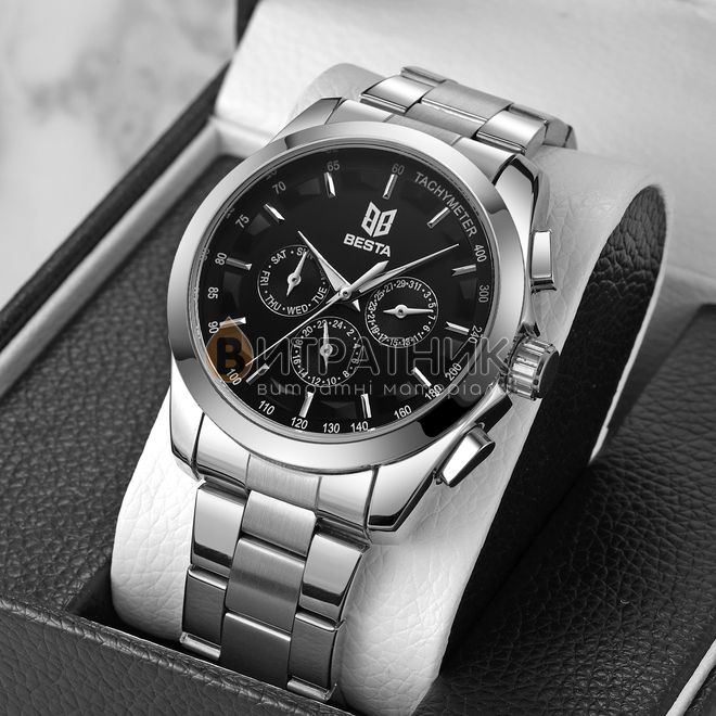 Стильний чоловічий годинник Besta Walker Steel відзначається оригінальним дизайном. Прямі лінії, гострі краї та ексклюзивно зроблений корпус додають виробу розкішного вигляду. Завдяки такому аксесуарові ви матимете унікальну можливість правильно розставити акценти у створеному вами образі. До того ж вам достатньо лише підняти руку, аби щось показати, як очі всіх присутніх будуть прикуті до вашого елегантного годинника.