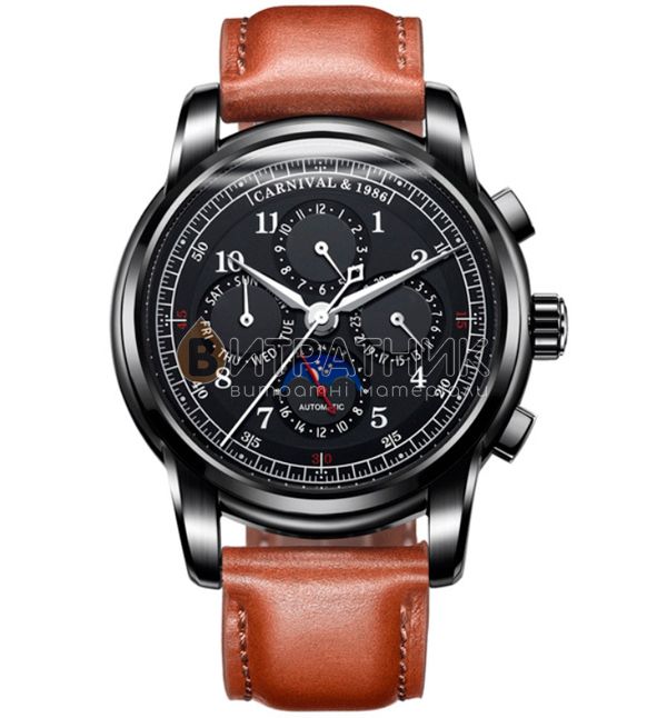 Дизайнери бренду Carnival приділили особливу увагу створенню циферблата. Колір моделі підібраний досить скрупульозно, щоб індекси / цифри відображалися на ньому максимально чітко та контрастно. Корпус виготовлений з міцного і зносостійкого матеріалу, який під впливом несприятливих факторів не втрачає своїх властивостей. Це означає, що ви зможете його носити стільки, скільки забажаєте. Аксесуар доповнений якісним ремінцем із класичною застібкою, яка регулюється. Він приємний на дотик, а при тривалому носінні не деформується й не псується. З огляду на такі характеристики вам просто необхідно купити чоловічий годинник Carnival SkyMoon Black, щоб залишатися у тренді, а головне, завжди підкреслювати авторитетність своєї персони у будь-якому суспільстві.