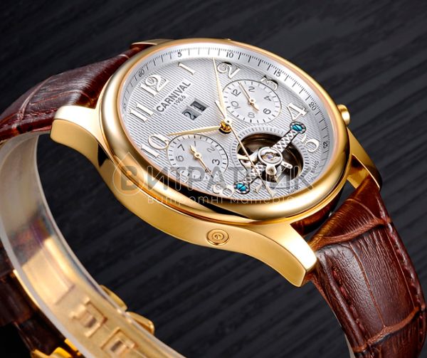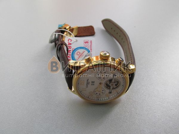 Дизайнери бренду Carnival приділили особливу увагу створенню циферблата. Колір моделі підібраний досить скрупульозно, щоб індекси / цифри відображалися на ньому максимально чітко та контрастно. Корпус виготовлений з міцного і зносостійкого матеріалу, який під впливом несприятливих факторів не втрачає своїх властивостей. Це означає, що ви зможете його носити стільки, скільки забажаєте. Аксесуар доповнений якісним ремінцем із класичною застібкою, яка регулюється. Він приємний на дотик, а при тривалому носінні не деформується й не псується. З огляду на такі характеристики вам просто необхідно купити чоловічий годинник Carnival Swiss Brown, щоб залишатися у тренді, а головне, завжди підкреслювати авторитетність своєї персони у будь-якому суспільстві.