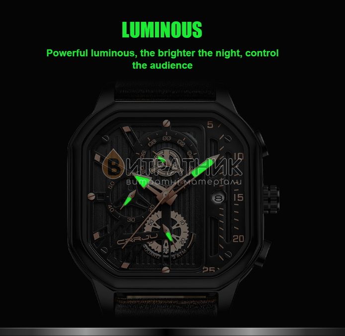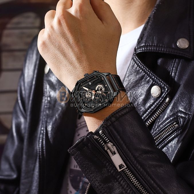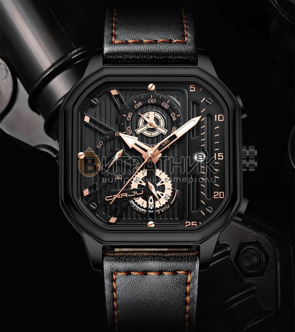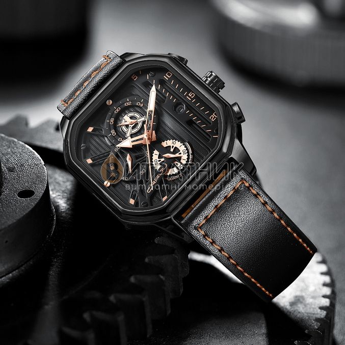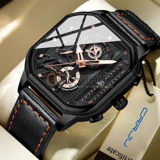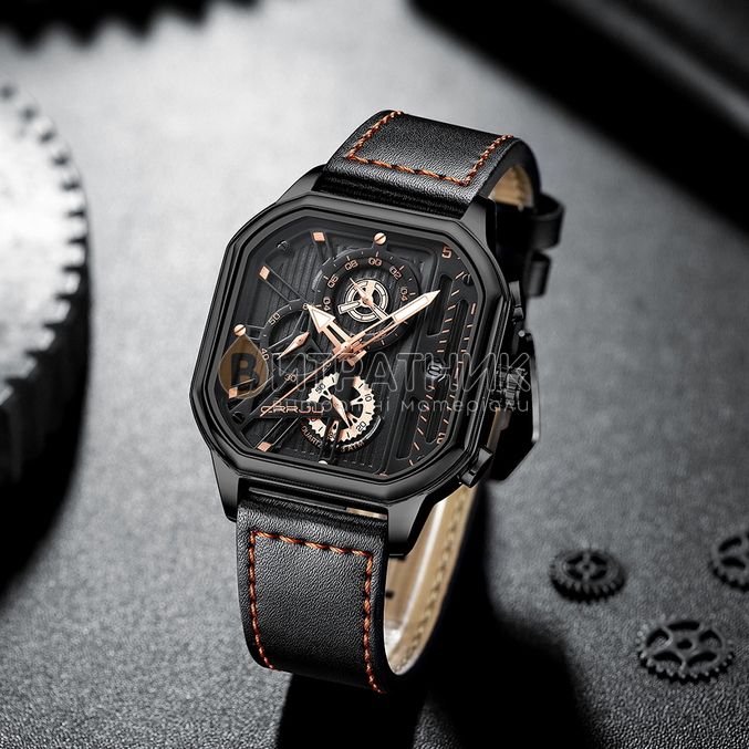 Стильний чоловічий годинник Crrju Faust відзначається оригінальним дизайном. Прямі лінії, гострі краї та ексклюзивно зроблений корпус додають виробу розкішного вигляду. Завдяки такому аксесуарові ви матимете унікальну можливість правильно розставити акценти у створеному вами образі. До того ж вам достатньо лише підняти руку, аби щось показати, як очі всіх присутніх будуть прикуті до вашого елегантного годинника.