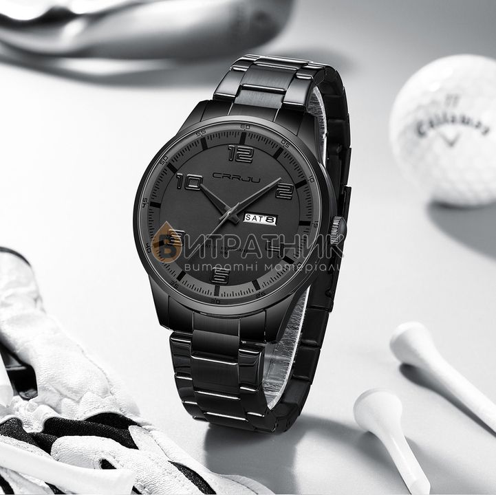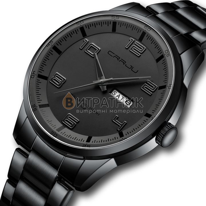 Дизайнери бренду Crrju приділили особливу увагу створенню циферблата. Колір моделі підібраний досить скрупульозно, щоб індекси / цифри відображалися на ньому максимально чітко та контрастно. Корпус виготовлений з міцного і зносостійкого матеріалу, який під впливом несприятливих факторів не втрачає своїх властивостей. Це означає, що ви зможете його носити стільки, скільки забажаєте. Аксесуар доповнений якісним ремінцем із класичною застібкою, яка регулюється. Він приємний на дотик, а при тривалому носінні не деформується й не псується. З огляду на такі характеристики вам просто необхідно купити чоловічий годинник Crrju Limited Black, щоб залишатися у тренді, а головне, завжди підкреслювати авторитетність своєї персони у будь-якому суспільстві.