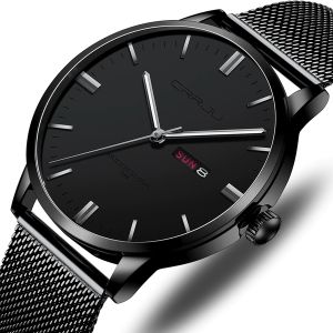 Дизайнери бренду Crrju приділили особливу увагу створенню циферблата. Колір моделі підібраний досить скрупульозно, щоб індекси / цифри відображалися на ньому максимально чітко та контрастно. Корпус виготовлений з міцного і зносостійкого матеріалу, який під впливом несприятливих факторів не втрачає своїх властивостей. Це означає, що ви зможете його носити стільки, скільки забажаєте. Аксесуар доповнений якісним ремінцем із класичною застібкою, яка регулюється. Він приємний на дотик, а при тривалому носінні не деформується й не псується. З огляду на такі характеристики вам просто необхідно купити чоловічий годинник Crrju Minimal, щоб залишатися у тренді, а головне, завжди підкреслювати авторитетність своєї персони у будь-якому суспільстві.