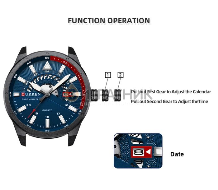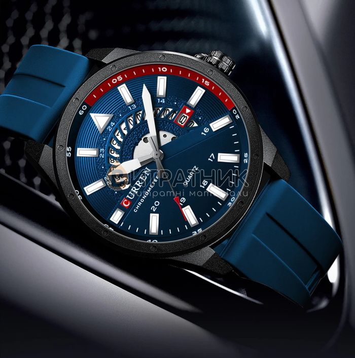 Стильний чоловічий годинник Curren Effect відзначається оригінальним дизайном. Прямі лінії, гострі краї та ексклюзивно зроблений корпус додають виробу розкішного вигляду. Завдяки такому аксесуарові ви матимете унікальну можливість правильно розставити акценти у створеному вами образі. До того ж вам достатньо лише підняти руку, аби щось показати, як очі всіх присутніх будуть прикуті до вашого елегантного годинника.