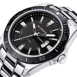 Дизайнери бренду Curren приділили особливу увагу створенню циферблата. Колір моделі підібраний досить скрупульозно, щоб індекси / цифри відображалися на ньому максимально чітко та контрастно. Корпус виготовлений з міцного і зносостійкого матеріалу, який під впливом несприятливих факторів не втрачає своїх властивостей. Це означає, що ви зможете його носити стільки, скільки забажаєте. Аксесуар доповнений якісним ремінцем із класичною застібкою, яка регулюється. Він приємний на дотик, а при тривалому носінні не деформується й не псується. З огляду на такі характеристики вам просто необхідно купити чоловічий годинник Curren Quartz, щоб залишатися у тренді, а головне, завжди підкреслювати авторитетність своєї персони у будь-якому суспільстві.