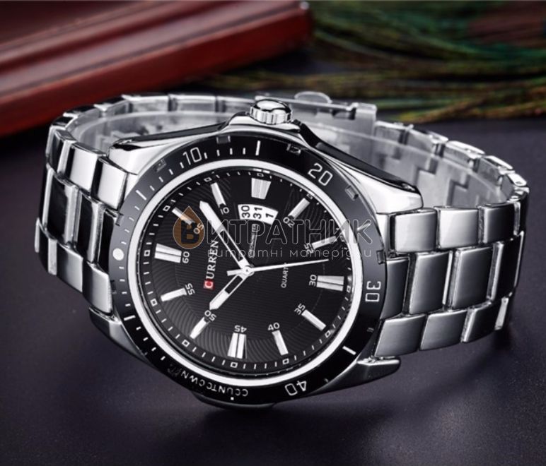 Стильний чоловічий годинник Curren Quartz відзначається оригінальним дизайном. Прямі лінії, гострі краї та ексклюзивно зроблений корпус додають виробу розкішного вигляду. Завдяки такому аксесуарові ви матимете унікальну можливість правильно розставити акценти у створеному вами образі. До того ж вам достатньо лише підняти руку, аби щось показати, як очі всіх присутніх будуть прикуті до вашого елегантного годинника.