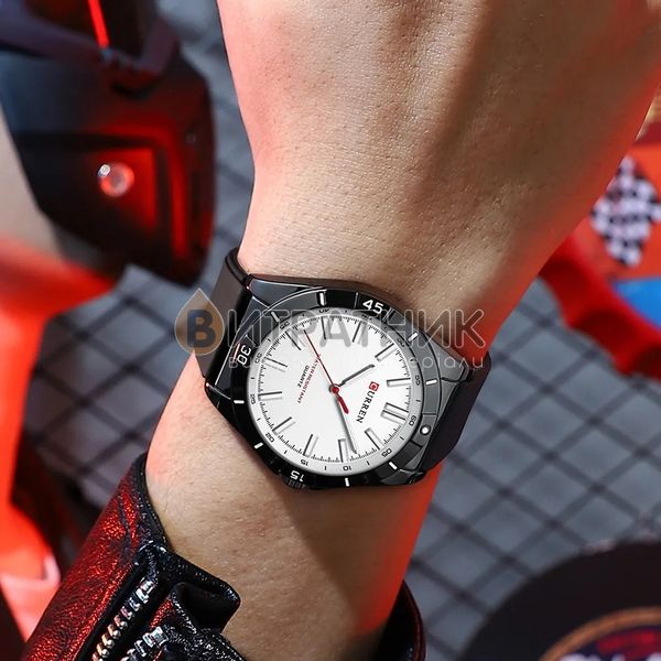 Стильний чоловічий годинник Curren West Black відзначається оригінальним дизайном. Прямі лінії, гострі краї та ексклюзивно зроблений корпус додають виробу розкішного вигляду. Завдяки такому аксесуарові ви матимете унікальну можливість правильно розставити акценти у створеному вами образі. До того ж вам достатньо лише підняти руку, аби щось показати, як очі всіх присутніх будуть прикуті до вашого елегантного годинника.