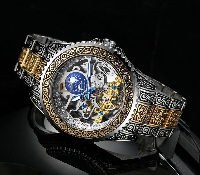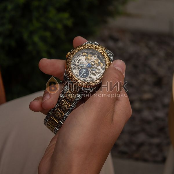 Функції:Уникальная гравировка циферблата и ремешка. маятник Турбиллион