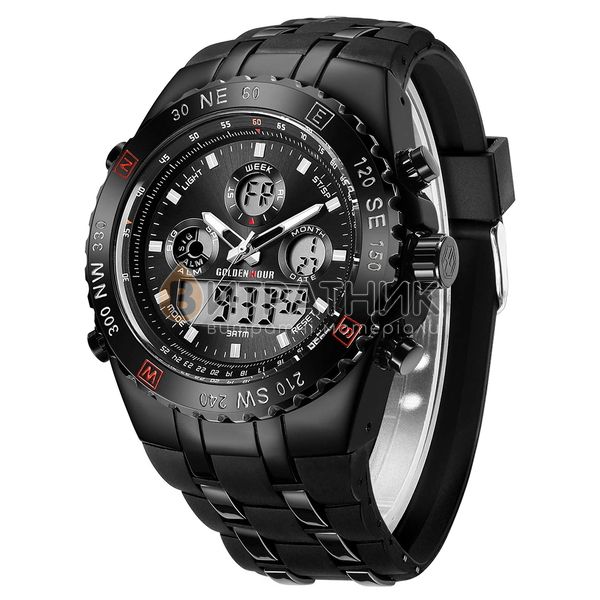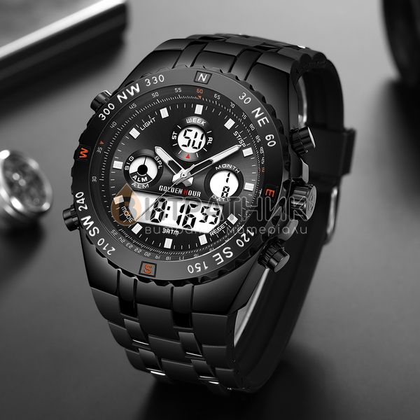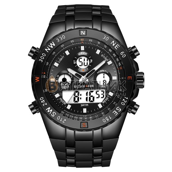 Стильний чоловічий годинник GoldenHour Bridge відзначається оригінальним дизайном. Прямі лінії, гострі краї та ексклюзивно зроблений корпус додають виробу розкішного вигляду. Завдяки такому аксесуарові ви матимете унікальну можливість правильно розставити акценти у створеному вами образі. До того ж вам достатньо лише підняти руку, аби щось показати, як очі всіх присутніх будуть прикуті до вашого елегантного годинника.
