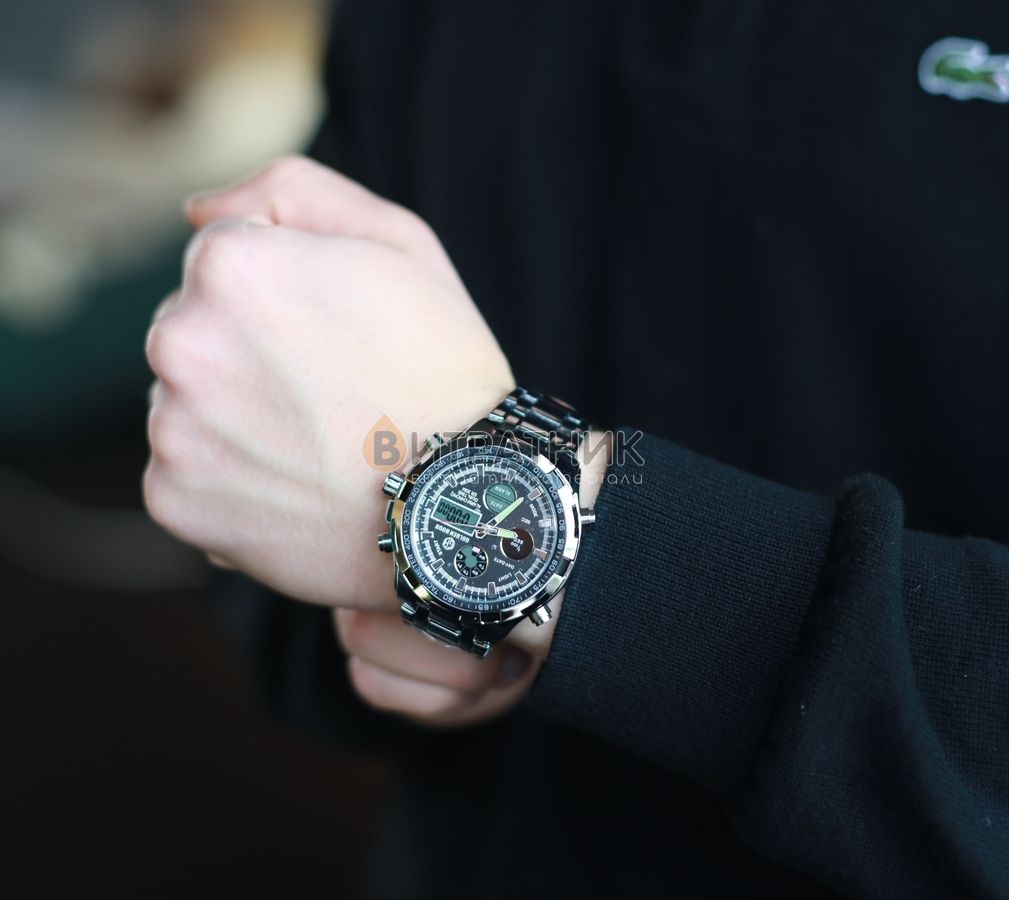Дизайнери бренду GoldenHour приділили особливу увагу створенню циферблата. Колір моделі підібраний досить скрупульозно, щоб індекси / цифри відображалися на ньому максимально чітко та контрастно. Корпус виготовлений з міцного і зносостійкого матеріалу, який під впливом несприятливих факторів не втрачає своїх властивостей. Це означає, що ви зможете його носити стільки, скільки забажаєте. Аксесуар доповнений якісним ремінцем із класичною застібкою, яка регулюється. Він приємний на дотик, а при тривалому носінні не деформується й не псується. З огляду на такі характеристики вам просто необхідно купити чоловічий годинник GoldenHour Titan, щоб залишатися у тренді, а головне, завжди підкреслювати авторитетність своєї персони у будь-якому суспільстві.