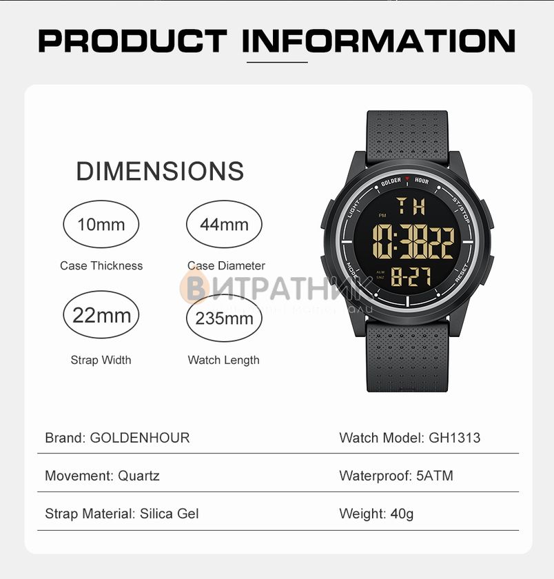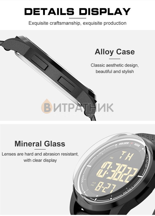 Функції:Будильник. подсветка. секундомер. дата. день недели. месяц