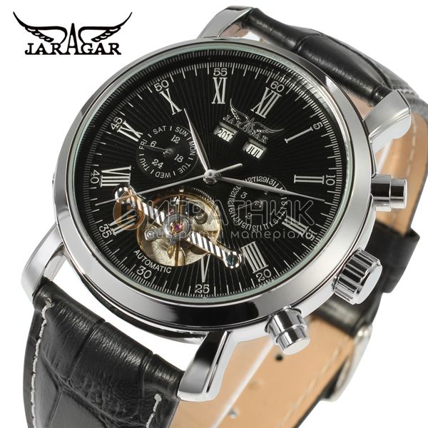 Дизайнери бренду Jaragar приділили особливу увагу створенню циферблата. Колір моделі підібраний досить скрупульозно, щоб індекси / цифри відображалися на ньому максимально чітко та контрастно. Корпус виготовлений з міцного і зносостійкого матеріалу, який під впливом несприятливих факторів не втрачає своїх властивостей. Це означає, що ви зможете його носити стільки, скільки забажаєте. Аксесуар доповнений якісним ремінцем із класичною застібкою, яка регулюється. Він приємний на дотик, а при тривалому носінні не деформується й не псується. З огляду на такі характеристики вам просто необхідно купити чоловічий годинник Jaragar Silver Star, щоб залишатися у тренді, а головне, завжди підкреслювати авторитетність своєї персони у будь-якому суспільстві.