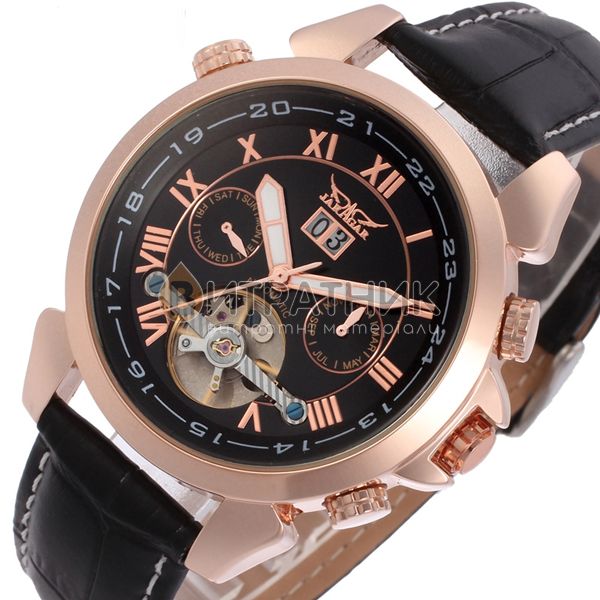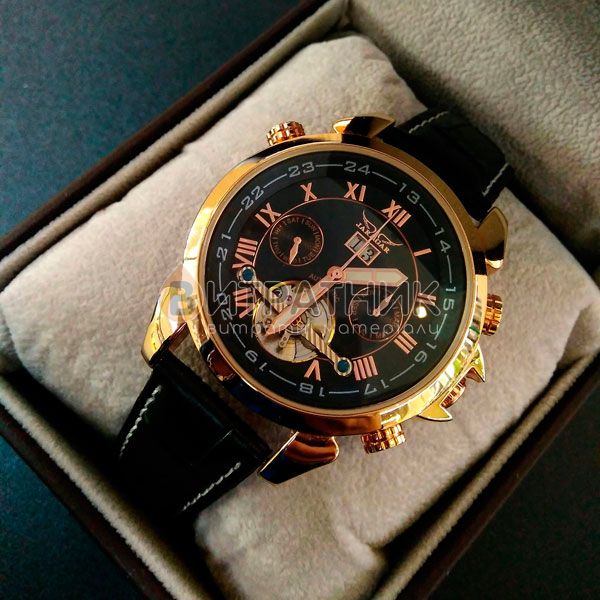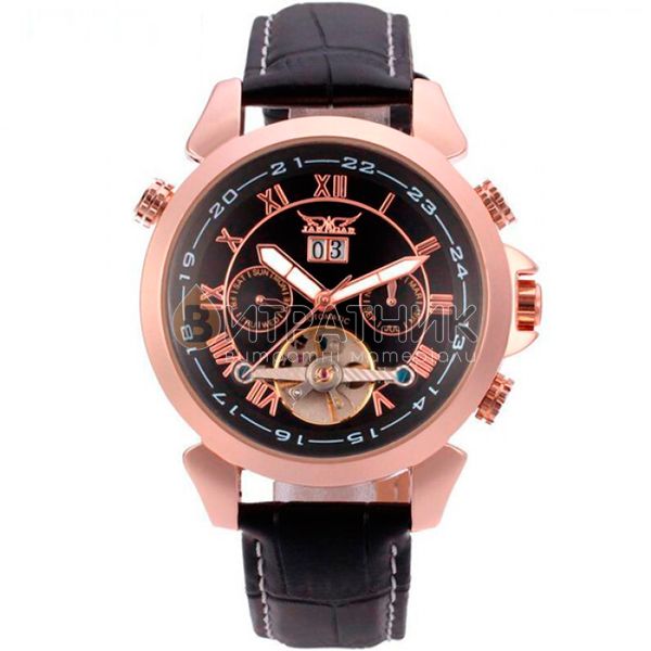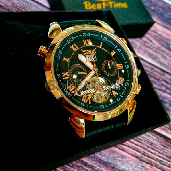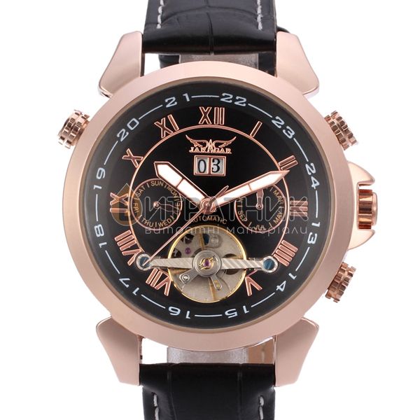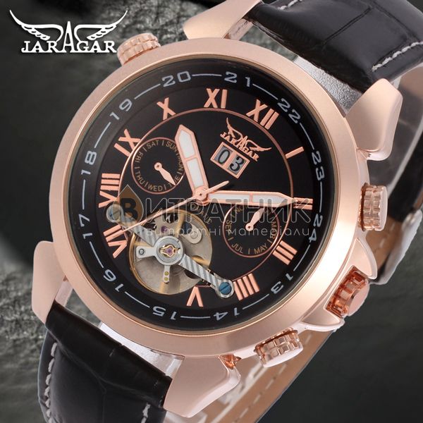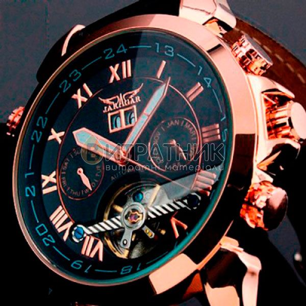 Дизайнери бренду Jaragar приділили особливу увагу створенню циферблата. Колір моделі підібраний досить скрупульозно, щоб індекси / цифри відображалися на ньому максимально чітко та контрастно. Корпус виготовлений з міцного і зносостійкого матеріалу, який під впливом несприятливих факторів не втрачає своїх властивостей. Це означає, що ви зможете його носити стільки, скільки забажаєте. Аксесуар доповнений якісним ремінцем із класичною застібкою, яка регулюється. Він приємний на дотик, а при тривалому носінні не деформується й не псується. З огляду на такі характеристики вам просто необхідно купити чоловічий годинник Jaragar Turboulion, щоб залишатися у тренді, а головне, завжди підкреслювати авторитетність своєї персони у будь-якому суспільстві.