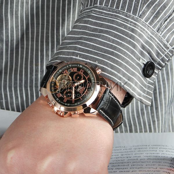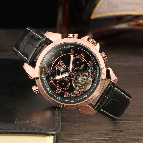 Стильний чоловічий годинник Jaragar Turboulion відзначається оригінальним дизайном. Прямі лінії, гострі краї та ексклюзивно зроблений корпус додають виробу розкішного вигляду. Завдяки такому аксесуарові ви матимете унікальну можливість правильно розставити акценти у створеному вами образі. До того ж вам достатньо лише підняти руку, аби щось показати, як очі всіх присутніх будуть прикуті до вашого елегантного годинника.