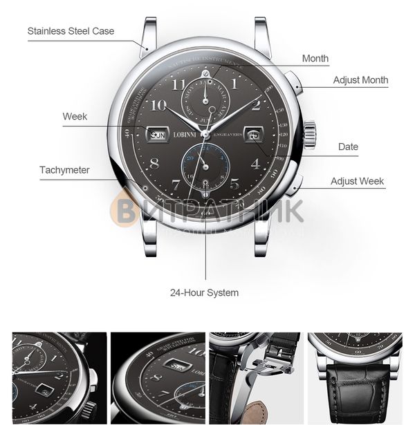 Стильний чоловічий годинник Lobinni Kapitan відзначається оригінальним дизайном. Прямі лінії, гострі краї та ексклюзивно зроблений корпус додають виробу розкішного вигляду. Завдяки такому аксесуарові ви матимете унікальну можливість правильно розставити акценти у створеному вами образі. До того ж вам достатньо лише підняти руку, аби щось показати, як очі всіх присутніх будуть прикуті до вашого елегантного годинника.