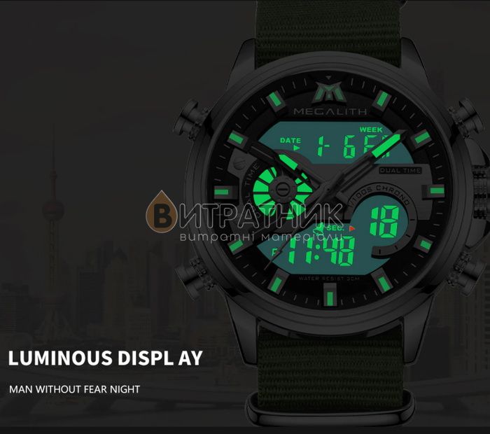 Стильний чоловічий годинник MegaLith Aviation відзначається оригінальним дизайном. Прямі лінії, гострі краї та ексклюзивно зроблений корпус додають виробу розкішного вигляду. Завдяки такому аксесуарові ви матимете унікальну можливість правильно розставити акценти у створеному вами образі. До того ж вам достатньо лише підняти руку, аби щось показати, як очі всіх присутніх будуть прикуті до вашого елегантного годинника.