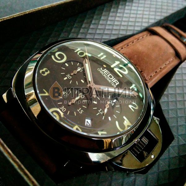 Дизайнери бренду приділили особливу увагу створенню циферблата. Колір моделі підібраний досить скрупульозно, щоб індекси / цифри відображалися на ньому максимально чітко та контрастно. Корпус виготовлений з міцного і зносостійкого матеріалу, який під впливом несприятливих факторів не втрачає своїх властивостей. Це означає, що ви зможете його носити стільки, скільки забажаєте. Аксесуар доповнений якісним ремінцем із класичною застібкою, яка регулюється. Він приємний на дотик, а при тривалому носінні не деформується й не псується. З огляду на такі характеристики вам просто необхідно купити чоловічий годинник Megir Luminor VIP, щоб залишатися у тренді, а головне, завжди підкреслювати авторитетність своєї персони у будь-якому суспільстві.