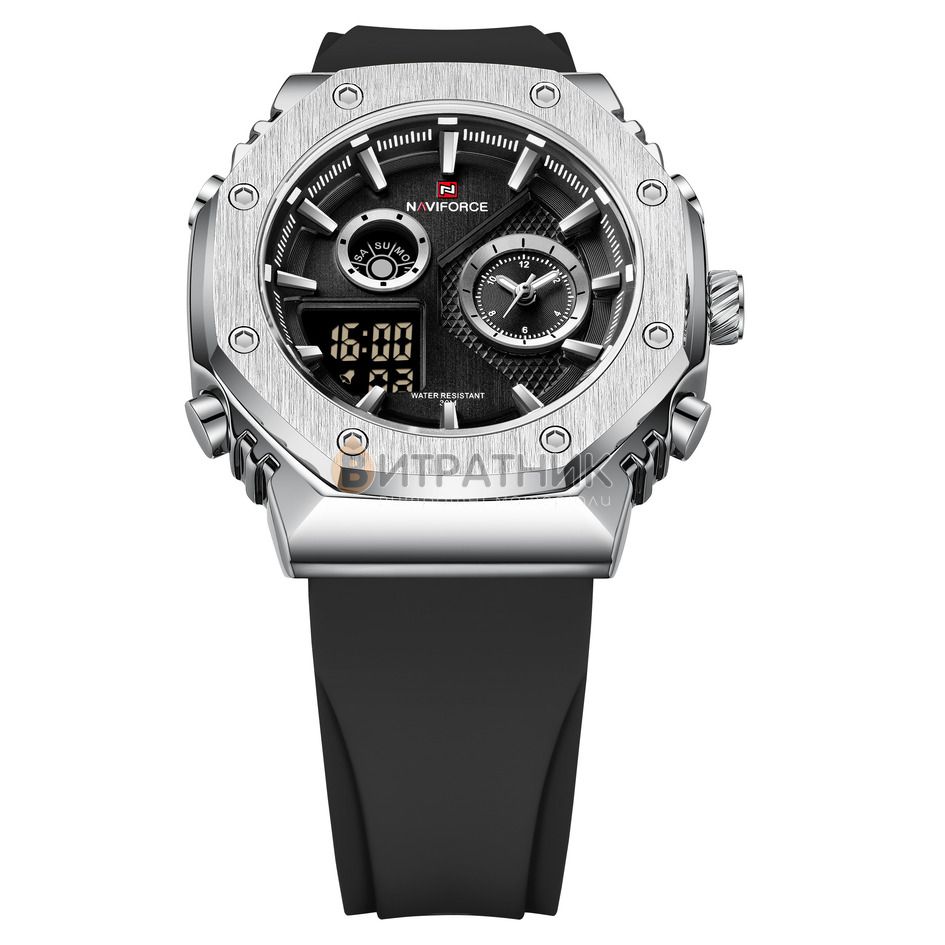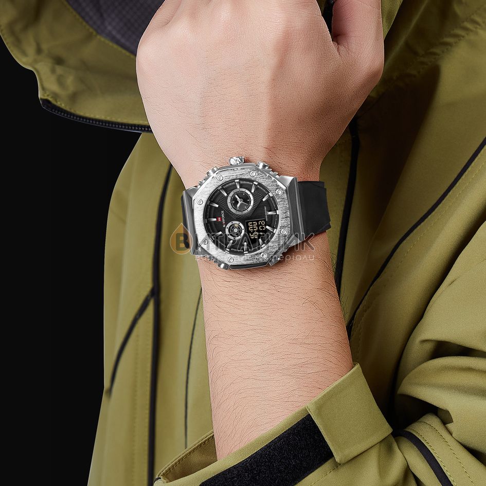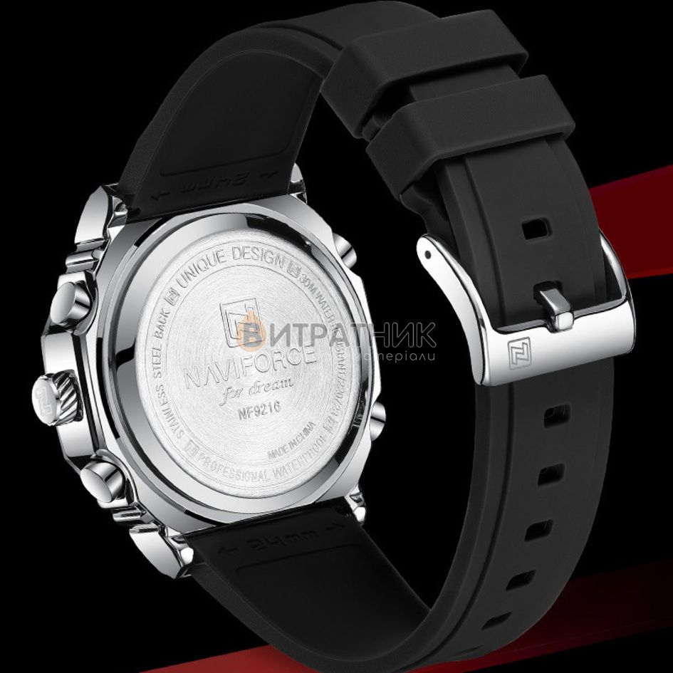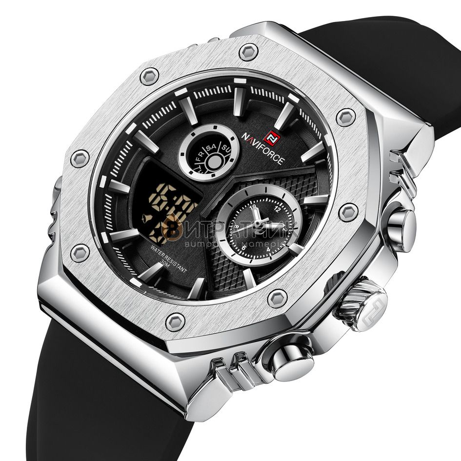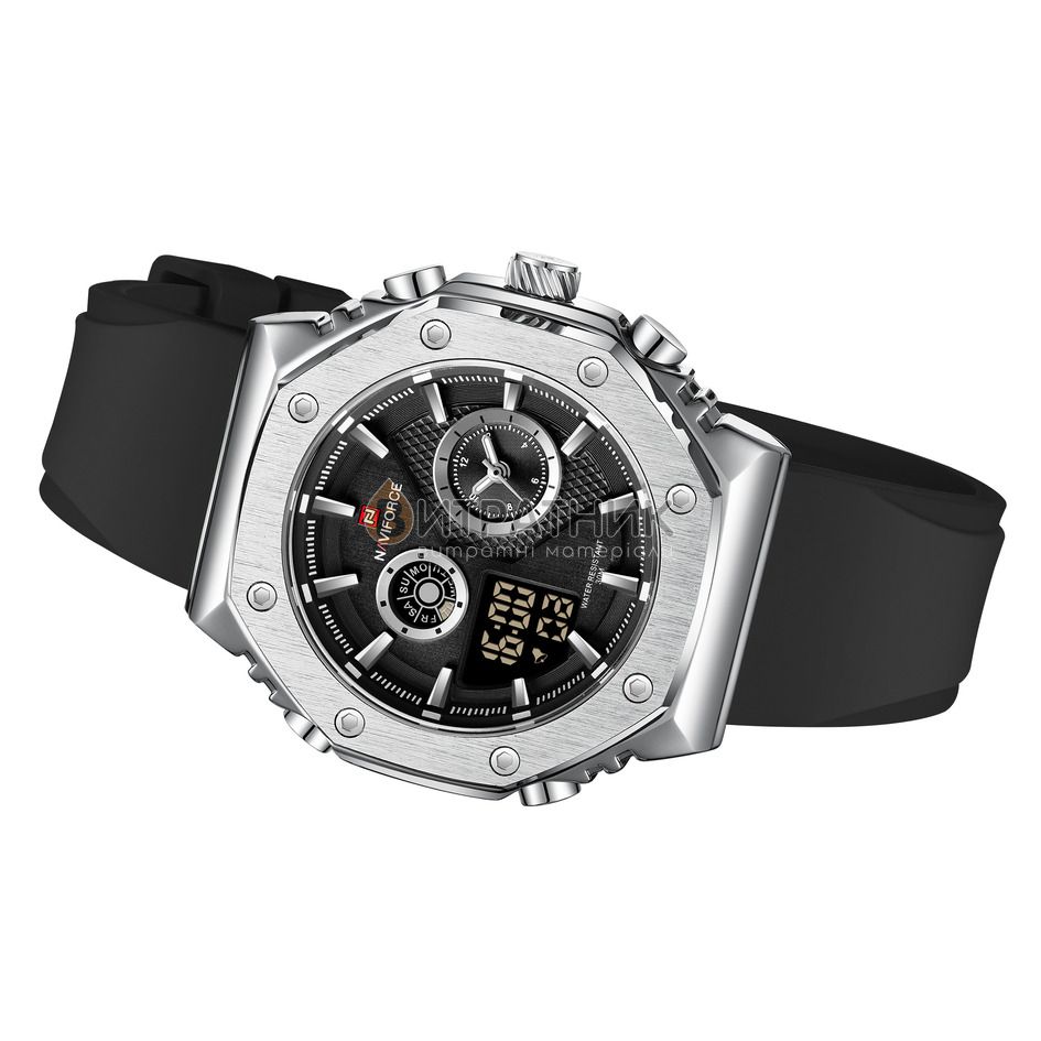 Стильний чоловічий годинник Naviforce Charger відзначається оригінальним дизайном. Прямі лінії, гострі краї та ексклюзивно зроблений корпус додають виробу розкішного вигляду. Завдяки такому аксесуарові ви матимете унікальну можливість правильно розставити акценти у створеному вами образі. До того ж вам достатньо лише підняти руку, аби щось показати, як очі всіх присутніх будуть прикуті до вашого елегантного годинника.