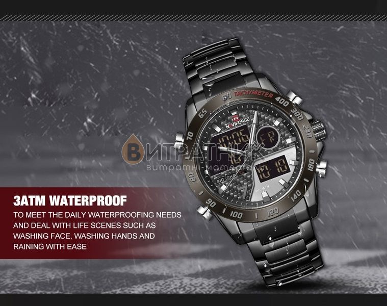 Дизайнери бренду Naviforce приділили особливу увагу створенню циферблата. Колір моделі підібраний досить скрупульозно, щоб індекси / цифри відображалися на ньому максимально чітко та контрастно. Корпус виготовлений з міцного і зносостійкого матеріалу, який під впливом несприятливих факторів не втрачає своїх властивостей. Це означає, що ви зможете його носити стільки, скільки забажаєте. Аксесуар доповнений якісним ремінцем із класичною застібкою, яка регулюється. Він приємний на дотик, а при тривалому носінні не деформується й не псується. З огляду на такі характеристики вам просто необхідно купити чоловічий годинник Naviforce Dnipro, щоб залишатися у тренді, а головне, завжди підкреслювати авторитетність своєї персони у будь-якому суспільстві.