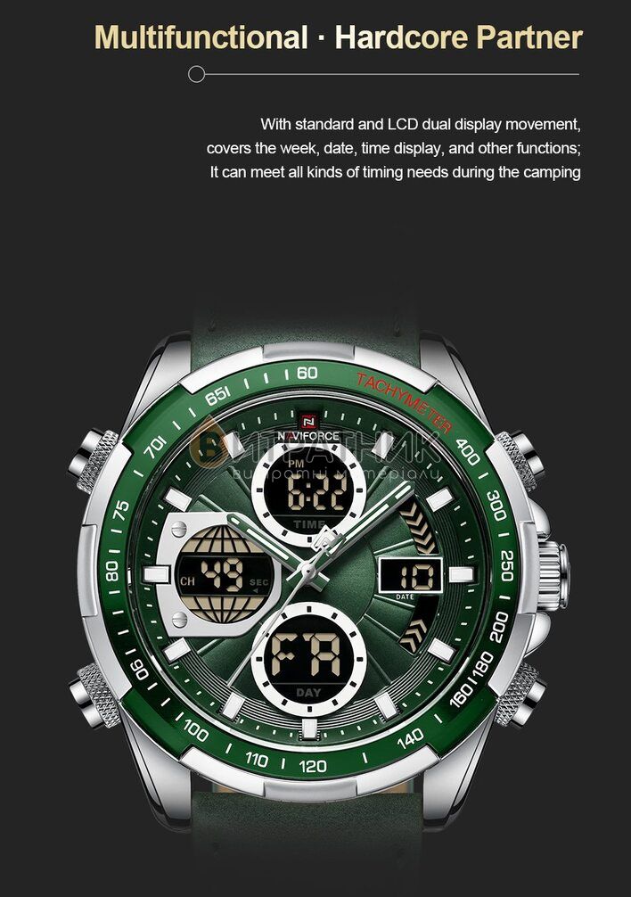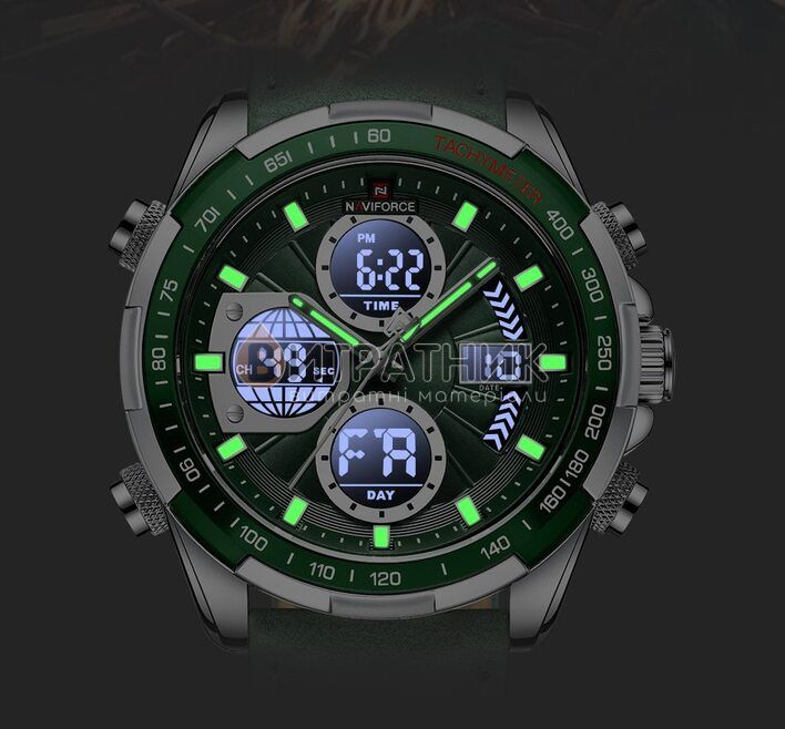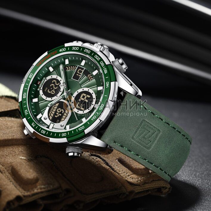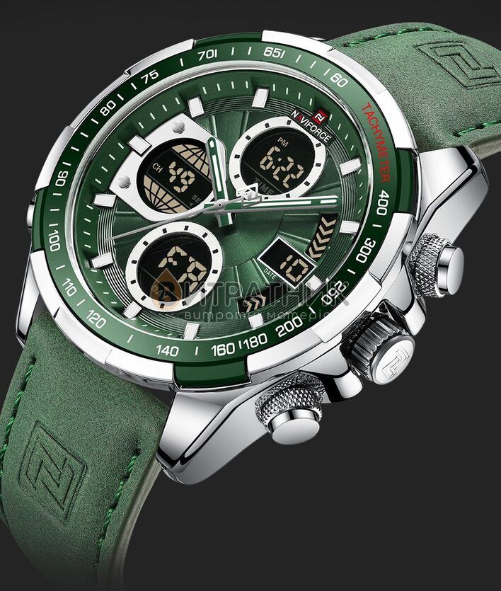 Стильний чоловічий годинник Naviforce Fly ArmyGreen відзначається оригінальним дизайном. Прямі лінії, гострі краї та ексклюзивно зроблений корпус додають виробу розкішного вигляду. Завдяки такому аксесуарові ви матимете унікальну можливість правильно розставити акценти у створеному вами образі. До того ж вам достатньо лише підняти руку, аби щось показати, як очі всіх присутніх будуть прикуті до вашого елегантного годинника.