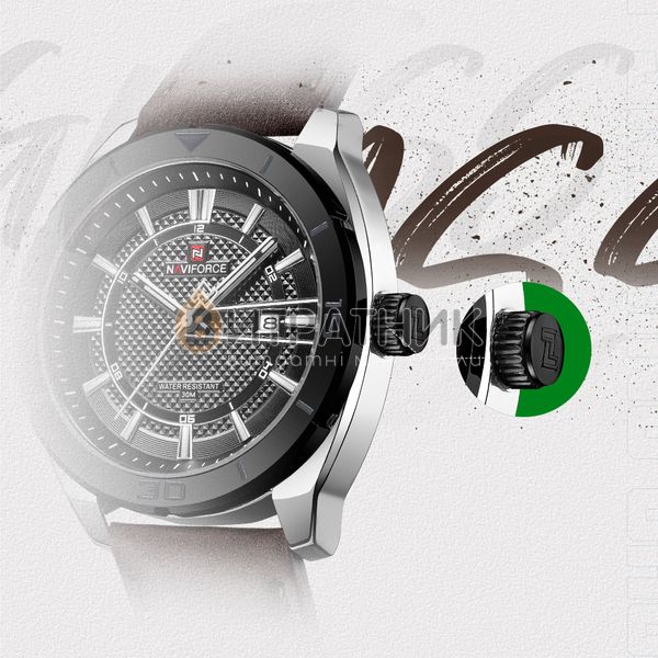 Стильний чоловічий годинник Naviforce Forest відзначається оригінальним дизайном. Прямі лінії, гострі краї та ексклюзивно зроблений корпус додають виробу розкішного вигляду. Завдяки такому аксесуарові ви матимете унікальну можливість правильно розставити акценти у створеному вами образі. До того ж вам достатньо лише підняти руку, аби щось показати, як очі всіх присутніх будуть прикуті до вашого елегантного годинника.
