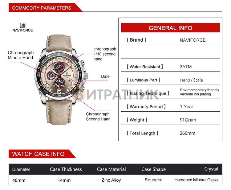Дизайнери бренду Naviforce приділили особливу увагу створенню циферблата. Колір моделі підібраний досить скрупульозно, щоб індекси / цифри відображалися на ньому максимально чітко та контрастно. Корпус виготовлений з міцного і зносостійкого матеріалу, який під впливом несприятливих факторів не втрачає своїх властивостей. Це означає, що ви зможете його носити стільки, скільки забажаєте. Аксесуар доповнений якісним ремінцем із класичною застібкою, яка регулюється. Він приємний на дотик, а при тривалому носінні не деформується й не псується. З огляду на такі характеристики вам просто необхідно купити чоловічий годинник Naviforce Peru, щоб залишатися у тренді, а головне, завжди підкреслювати авторитетність своєї персони у будь-якому суспільстві.