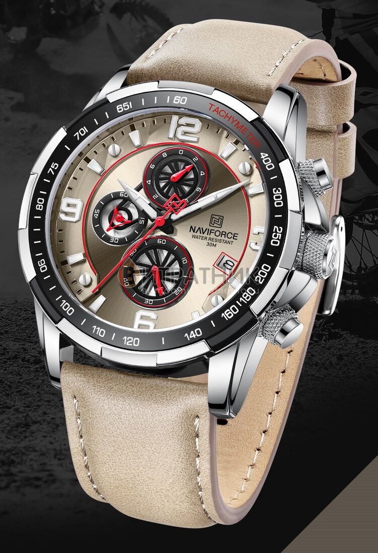 Стильний чоловічий годинник Naviforce Peru відзначається оригінальним дизайном. Прямі лінії, гострі краї та ексклюзивно зроблений корпус додають виробу розкішного вигляду. Завдяки такому аксесуарові ви матимете унікальну можливість правильно розставити акценти у створеному вами образі. До того ж вам достатньо лише підняти руку, аби щось показати, як очі всіх присутніх будуть прикуті до вашого елегантного годинника.