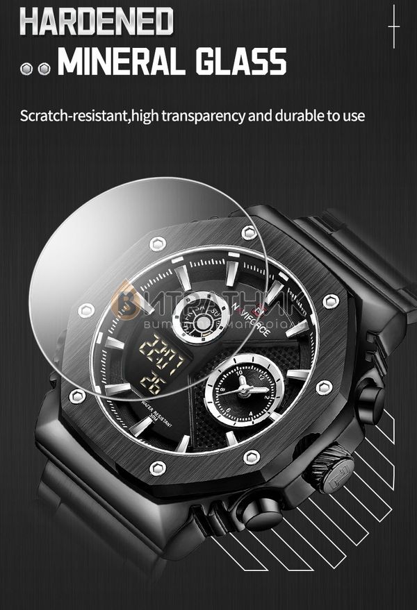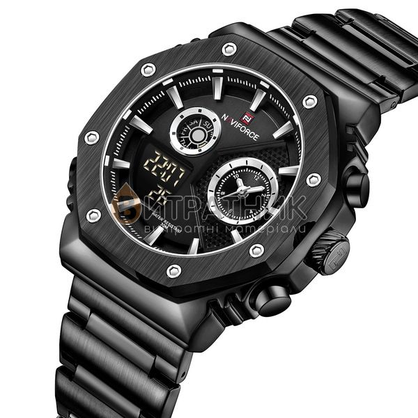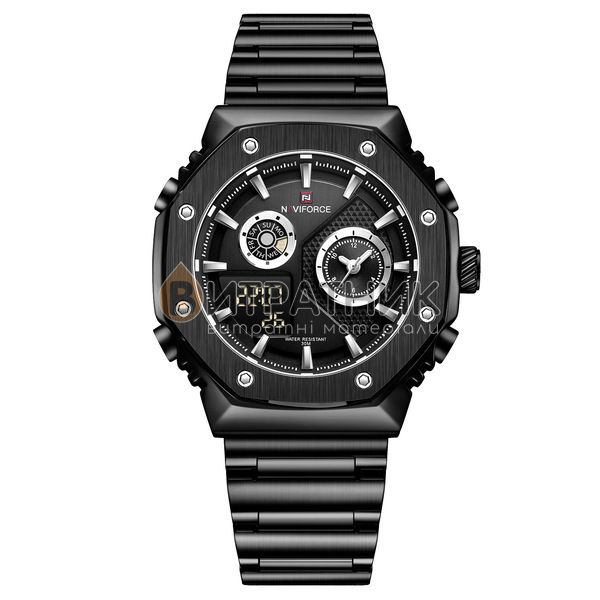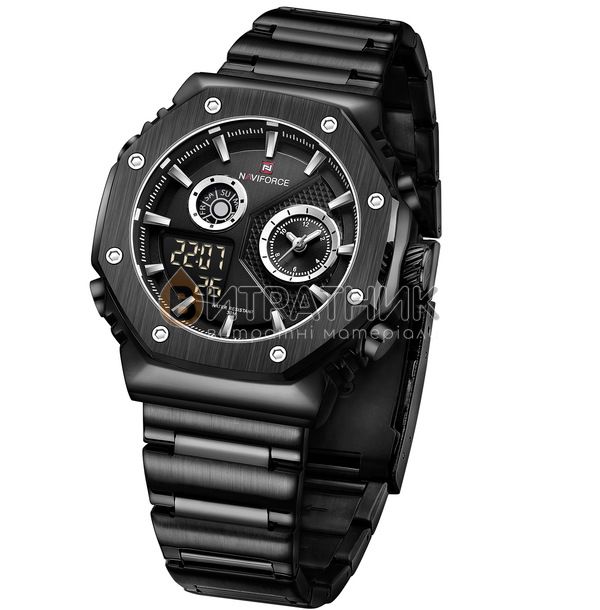 Стильний чоловічий годинник Naviforce Resist відзначається оригінальним дизайном. Прямі лінії, гострі краї та ексклюзивно зроблений корпус додають виробу розкішного вигляду. Завдяки такому аксесуарові ви матимете унікальну можливість правильно розставити акценти у створеному вами образі. До того ж вам достатньо лише підняти руку, аби щось показати, як очі всіх присутніх будуть прикуті до вашого елегантного годинника.