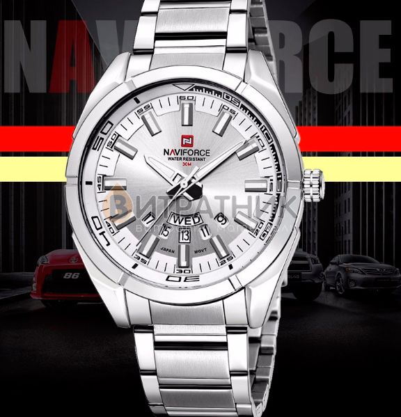 Стильний чоловічий годинник Naviforce Rocket відзначається оригінальним дизайном. Прямі лінії, гострі краї та ексклюзивно зроблений корпус додають виробу розкішного вигляду. Завдяки такому аксесуарові ви матимете унікальну можливість правильно розставити акценти у створеному вами образі. До того ж вам достатньо лише підняти руку, аби щось показати, як очі всіх присутніх будуть прикуті до вашого елегантного годинника.