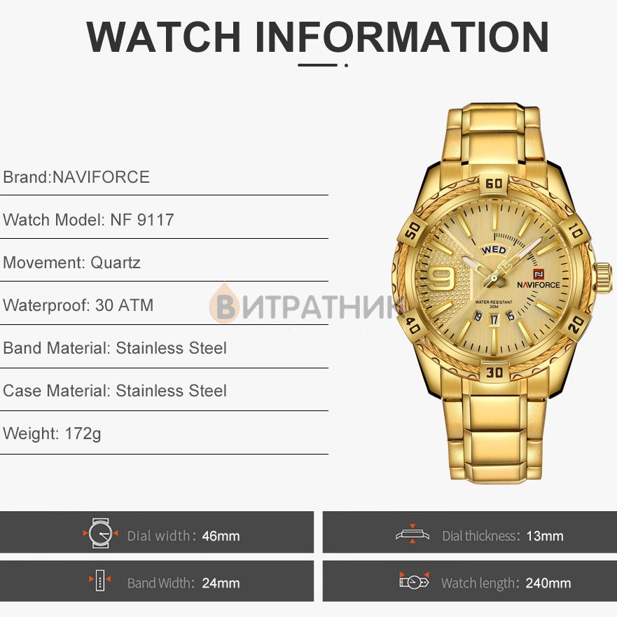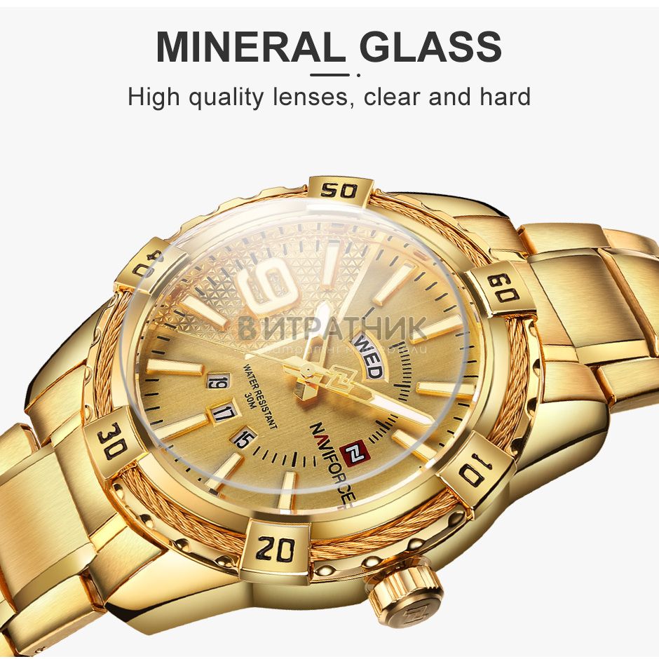 Стильний чоловічий годинник Naviforce Yacht Gold відзначається оригінальним дизайном. Прямі лінії, гострі краї та ексклюзивно зроблений корпус додають виробу розкішного вигляду. Завдяки такому аксесуарові ви матимете унікальну можливість правильно розставити акценти у створеному вами образі. До того ж вам достатньо лише підняти руку, аби щось показати, як очі всіх присутніх будуть прикуті до вашого елегантного годинника.