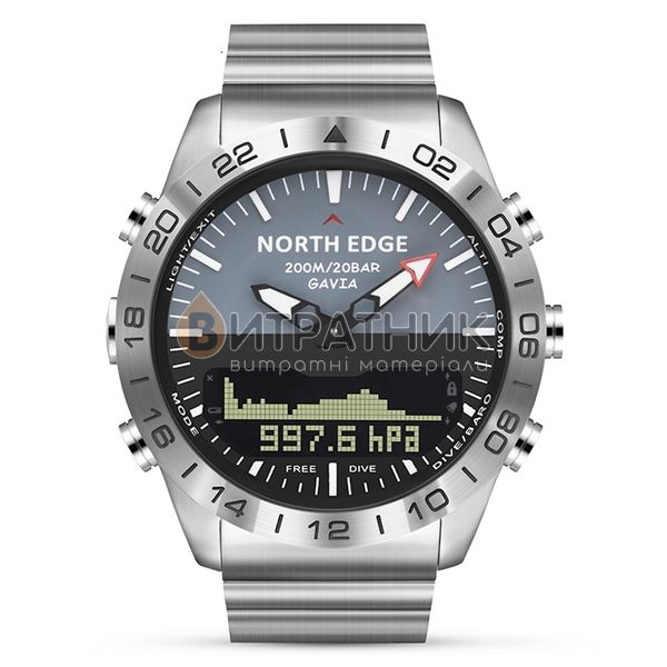 Стильний чоловічий годинник North Edge Gavia 20BAR відзначається оригінальним дизайном. Прямі лінії, гострі краї та ексклюзивно зроблений корпус додають виробу розкішного вигляду. Завдяки такому аксесуарові ви матимете унікальну можливість правильно розставити акценти у створеному вами образі. До того ж вам достатньо лише підняти руку, аби щось показати, як очі всіх присутніх будуть прикуті до вашого елегантного годинника.