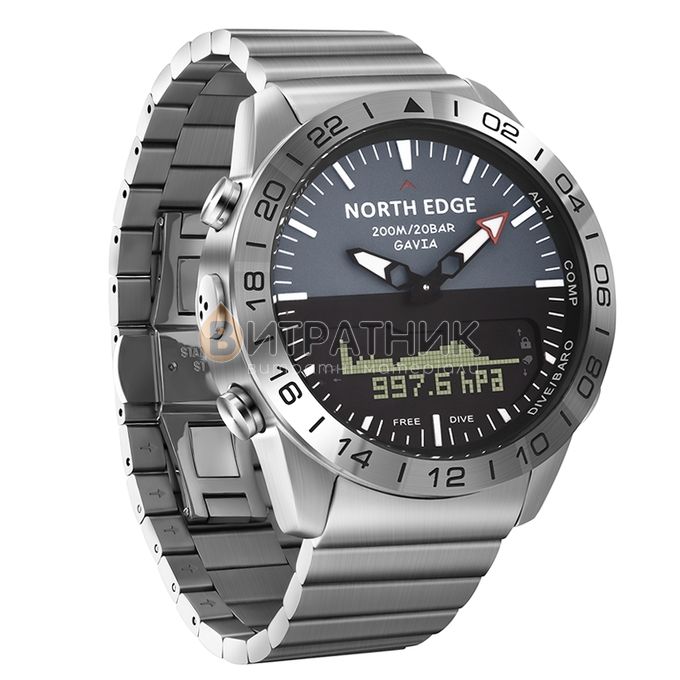 Функції:Водостойкость – 200 метров. компас. барометр. педометр. режим дайвинга секундомер. подсветка. фитнес-трекер. будильник.