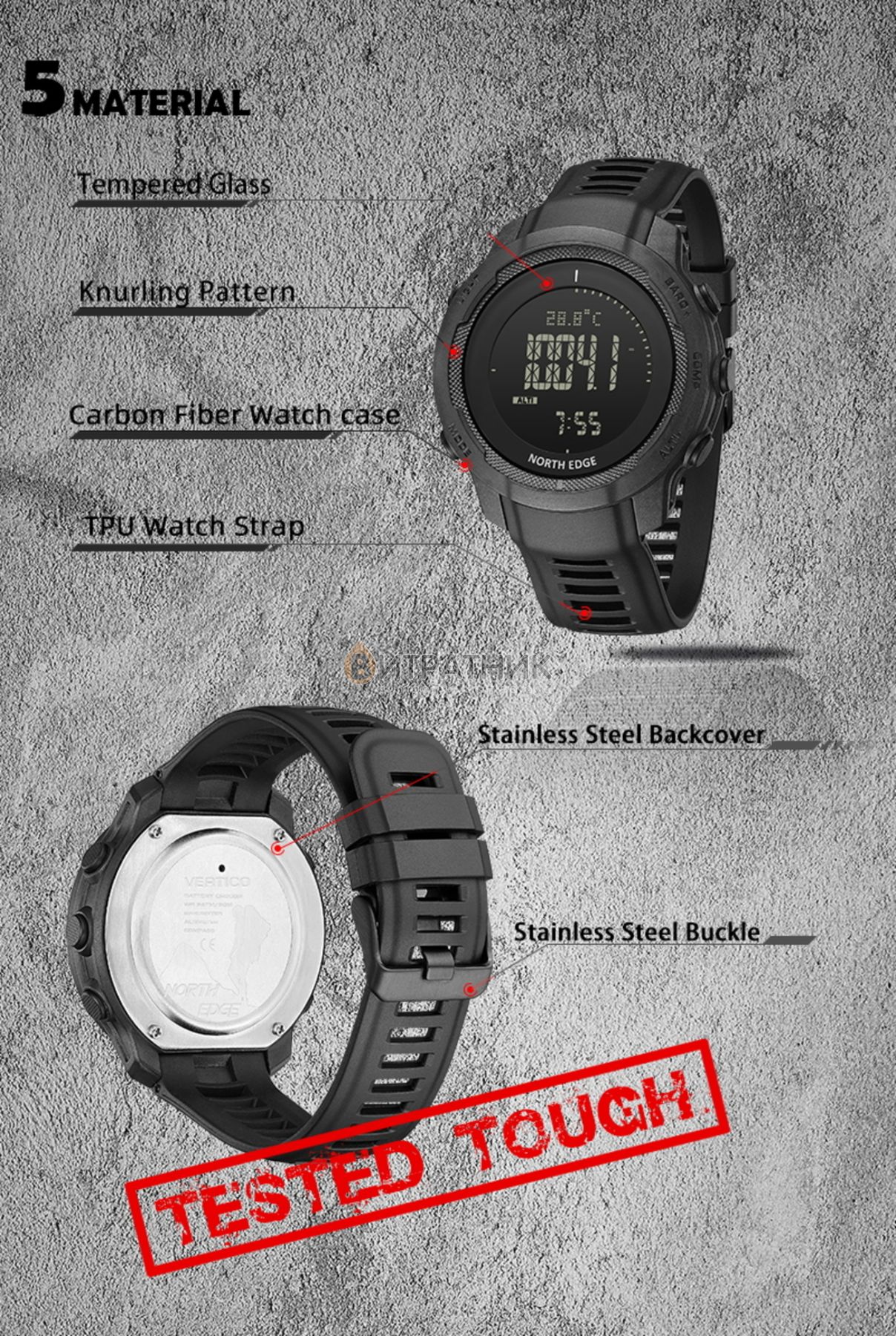Дизайнери бренду North Edge приділили особливу увагу створенню циферблата. Колір моделі підібраний досить скрупульозно, щоб індекси / цифри відображалися на ньому максимально чітко та контрастно. Корпус виготовлений з міцного і зносостійкого матеріалу, який під впливом несприятливих факторів не втрачає своїх властивостей. Це означає, що ви зможете його носити стільки, скільки забажаєте. Аксесуар доповнений якісним ремінцем із класичною застібкою, яка регулюється. Він приємний на дотик, а при тривалому носінні не деформується й не псується. З огляду на такі характеристики вам просто необхідно купити чоловічий годинник North Edge Vertico з компасом, щоб залишатися у тренді, а головне, завжди підкреслювати авторитетність своєї персони у будь-якому суспільстві.