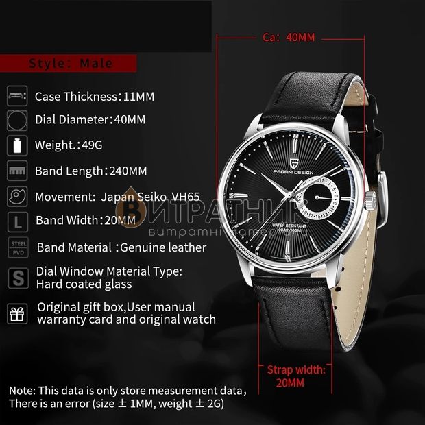 Стильний чоловічий годинник Pagani Design Country 10 BAR відзначається оригінальним дизайном. Прямі лінії, гострі краї та ексклюзивно зроблений корпус додають виробу розкішного вигляду. Завдяки такому аксесуарові ви матимете унікальну можливість правильно розставити акценти у створеному вами образі. До того ж вам достатньо лише підняти руку, аби щось показати, як очі всіх присутніх будуть прикуті до вашого елегантного годинника.