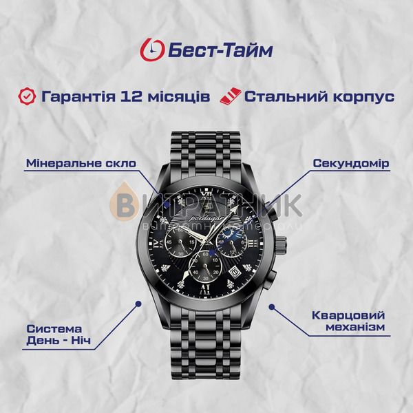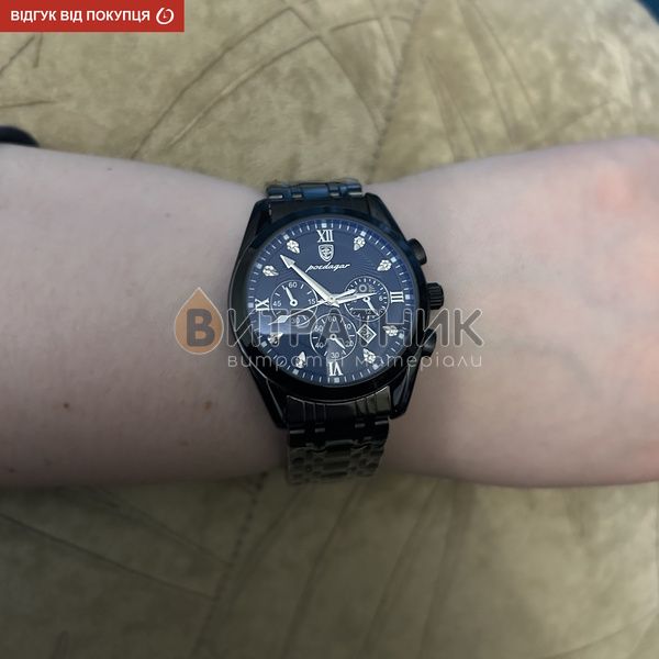 Дизайнери бренду Poedagar приділили особливу увагу створенню циферблата. Колір моделі підібраний досить скрупульозно, щоб індекси / цифри відображалися на ньому максимально чітко та контрастно. Корпус виготовлений з міцного і зносостійкого матеріалу, який під впливом несприятливих факторів не втрачає своїх властивостей. Це означає, що ви зможете його носити стільки, скільки забажаєте. Аксесуар доповнений якісним ремінцем із класичною застібкою, яка регулюється. Він приємний на дотик, а при тривалому носінні не деформується й не псується. З огляду на такі характеристики вам просто необхідно купити чоловічий годинник Poedagar Magnat Steel, щоб залишатися у тренді, а головне, завжди підкреслювати авторитетність своєї персони у будь-якому суспільстві.