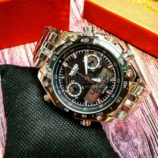 Стильний чоловічий годинник Skmei Direct 1204 відзначається оригінальним дизайном. Прямі лінії, гострі краї та ексклюзивно зроблений корпус додають виробу розкішного вигляду. Завдяки такому аксесуарові ви матимете унікальну можливість правильно розставити акценти у створеному вами образі. До того ж вам достатньо лише підняти руку, аби щось показати, як очі всіх присутніх будуть прикуті до вашого елегантного годинника.