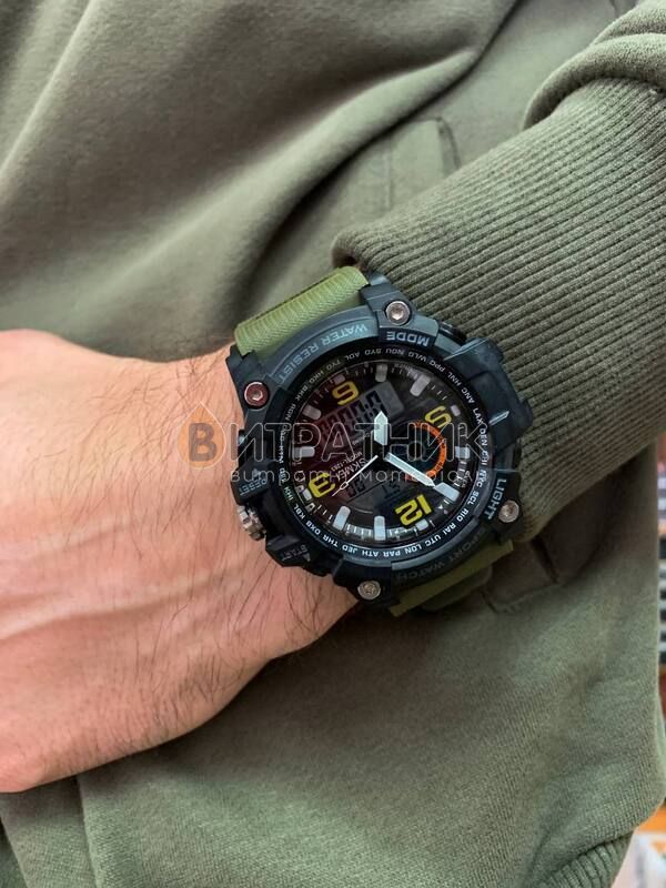 Функції:Секундомер. Таймер. будильник. подсветка. время указывается на циферблате и стрелками. дата. день недели. месяц. второе время (Dual Time)