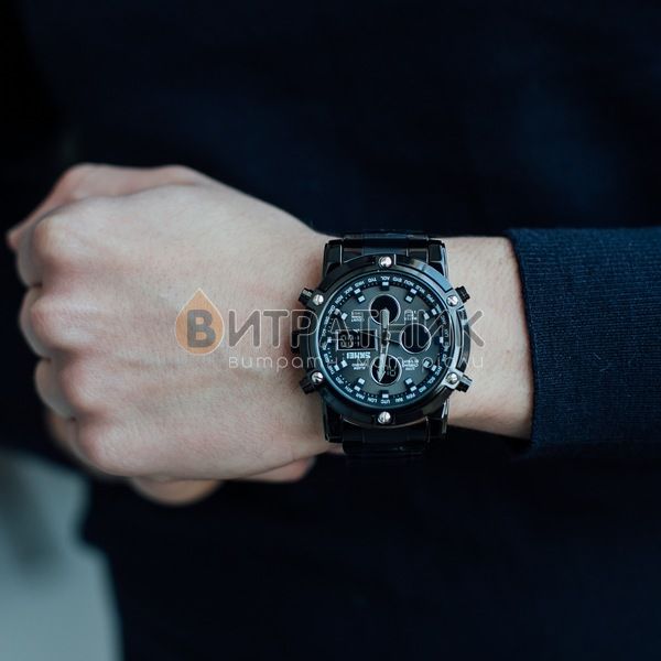 Дизайнери бренду Skmei приділили особливу увагу створенню циферблата. Колір моделі підібраний досить скрупульозно, щоб індекси / цифри відображалися на ньому максимально чітко та контрастно. Корпус виготовлений з міцного і зносостійкого матеріалу, який під впливом несприятливих факторів не втрачає своїх властивостей. Це означає, що ви зможете його носити стільки, скільки забажаєте. Аксесуар доповнений якісним ремінцем із класичною застібкою, яка регулюється. Він приємний на дотик, а при тривалому носінні не деформується й не псується. З огляду на такі характеристики вам просто необхідно купити чоловічий годинник Skmei Molot Limited AllBlack, щоб залишатися у тренді, а головне, завжди підкреслювати авторитетність своєї персони у будь-якому суспільстві.