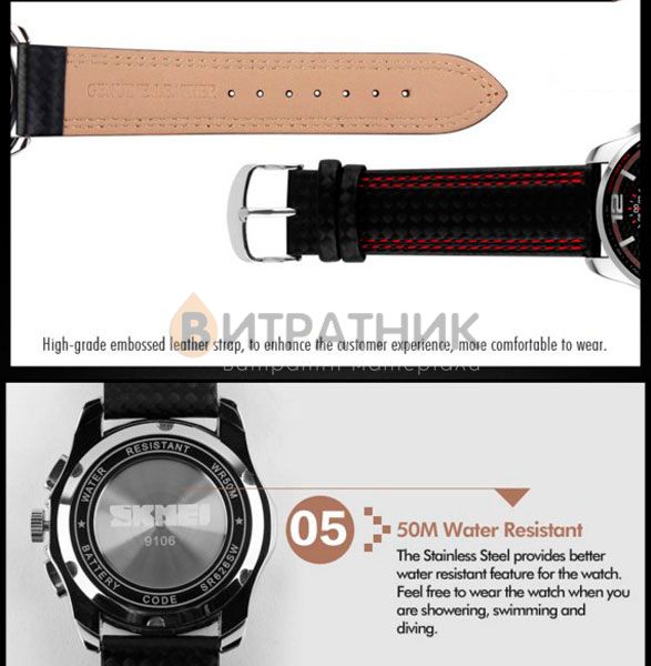 Дизайнери бренду Skmei приділили особливу увагу створенню циферблата. Колір моделі підібраний досить скрупульозно, щоб індекси / цифри відображалися на ньому максимально чітко та контрастно. Корпус виготовлений з міцного і зносостійкого матеріалу, який під впливом несприятливих факторів не втрачає своїх властивостей. Це означає, що ви зможете його носити стільки, скільки забажаєте. Аксесуар доповнений якісним ремінцем із класичною застібкою, яка регулюється. Він приємний на дотик, а при тривалому носінні не деформується й не псується. З огляду на такі характеристики вам просто необхідно купити чоловічий годинник Skmei Spider 9106, щоб залишатися у тренді, а головне, завжди підкреслювати авторитетність своєї персони у будь-якому суспільстві.