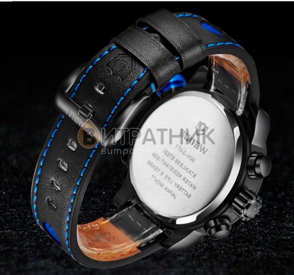 Дизайнери бренду Weide приділили особливу увагу створенню циферблата. Колір моделі підібраний досить скрупульозно, щоб індекси / цифри відображалися на ньому максимально чітко та контрастно. Корпус виготовлений з міцного і зносостійкого матеріалу, який під впливом несприятливих факторів не втрачає своїх властивостей. Це означає, що ви зможете його носити стільки, скільки забажаєте. Аксесуар доповнений якісним ремінцем із класичною застібкою, яка регулюється. Він приємний на дотик, а при тривалому носінні не деформується й не псується. З огляду на такі характеристики вам просто необхідно купити чоловічий годинник Weide Premium Blue, щоб залишатися у тренді, а головне, завжди підкреслювати авторитетність своєї персони у будь-якому суспільстві.