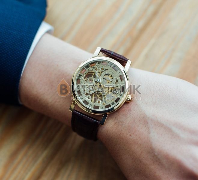 Стильний чоловічий годинник Winner Gold відзначається оригінальним дизайном. Прямі лінії, гострі краї та ексклюзивно зроблений корпус додають виробу розкішного вигляду. Завдяки такому аксесуарові ви матимете унікальну можливість правильно розставити акценти у створеному вами образі. До того ж вам достатньо лише підняти руку, аби щось показати, як очі всіх присутніх будуть прикуті до вашого елегантного годинника.