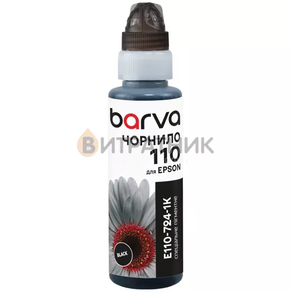 - Чорнило для Epson EcoTank M1170/M2170/M3170, сумісне 110 BK, спеціальне, 100 мл, флакон OneKey (1K), пігментне, чорне Barva
