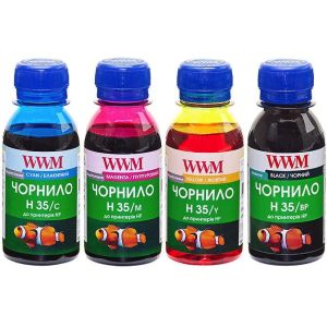 Комплект чорнил WWM для HP №21/121/131 4х100г BP/C/M/Y Пігментне/Водорозчинне (H35SET-2) для СНПЧ